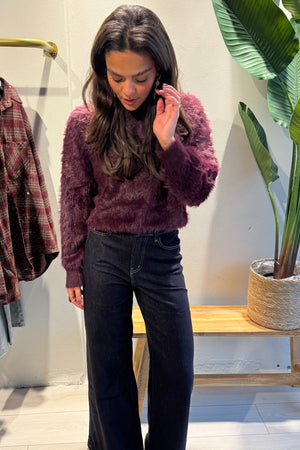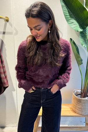 De Alara trui bordeaux is een heerlijk zachte en fluffy trui die zorgt voor ultiem comfort en een cozy uitstraling. Perfect voor knusse herfst- of winterdagen, maar ook stijlvol te combineren met je favoriete broeken of rokken.