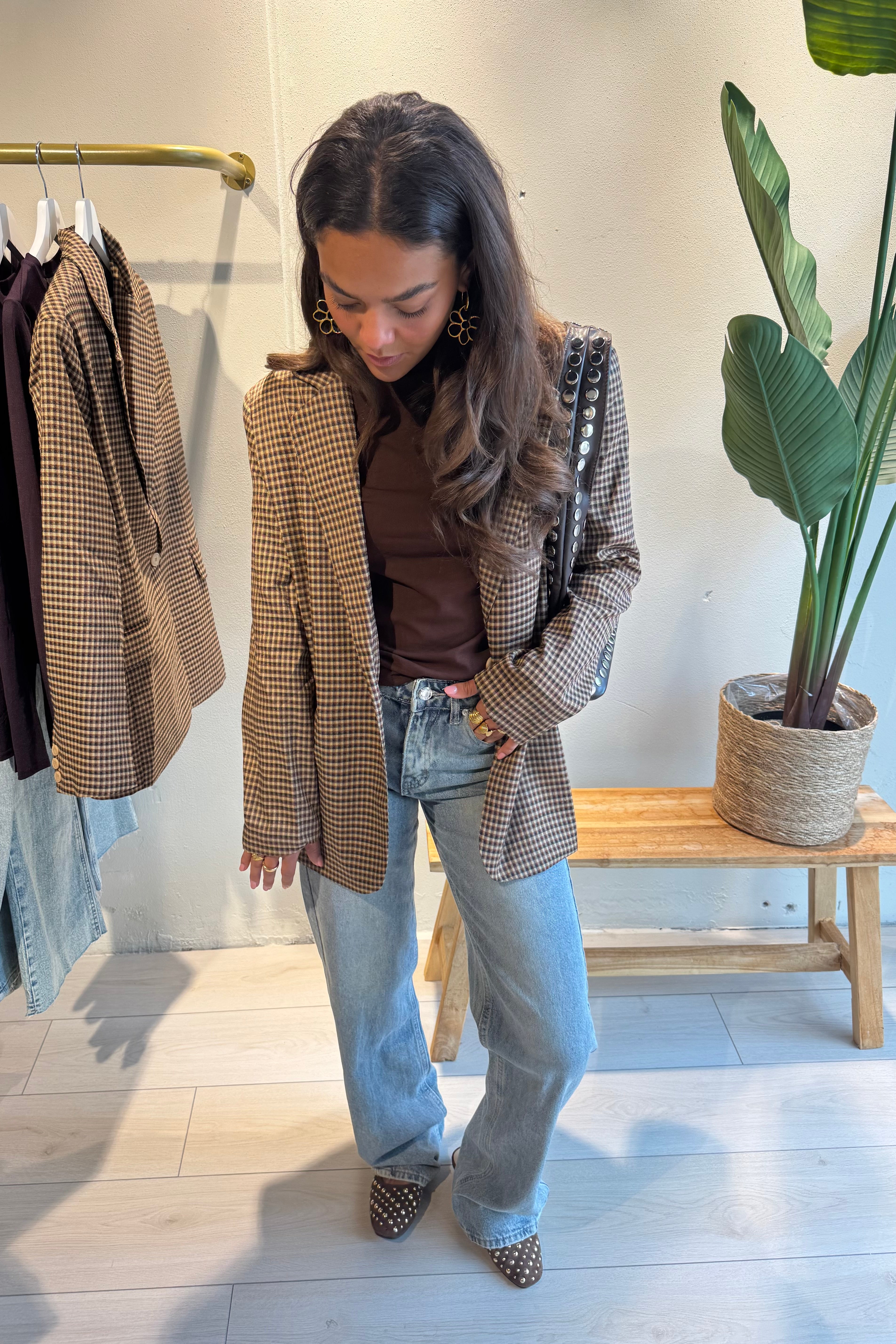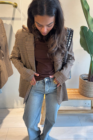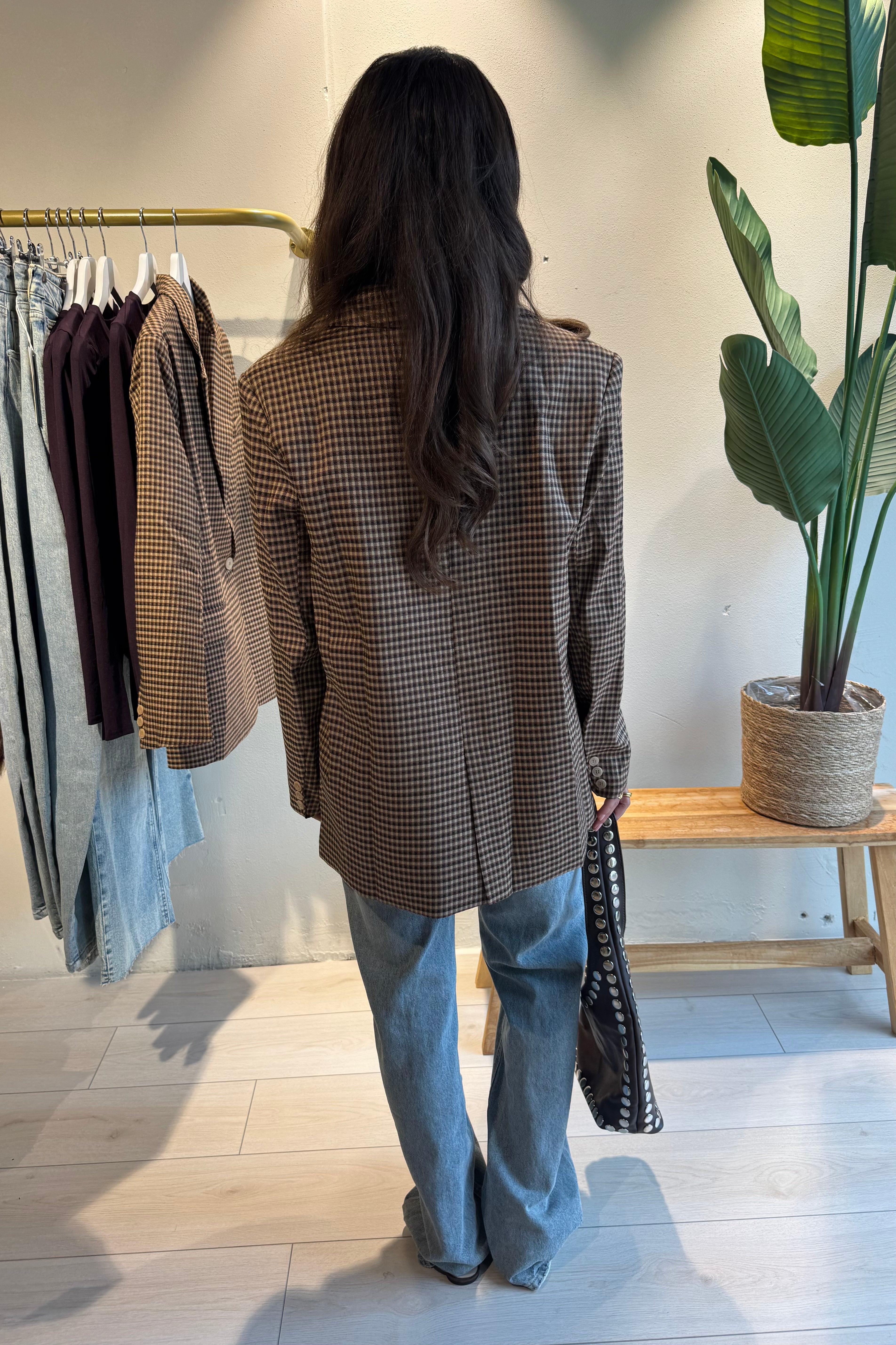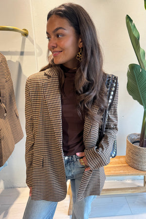 De Bowie Blazer is allesbehalve saai! Deze toffe blazer heeft een uniek blokjespatroon met de kleuren bruin, beige, zwart én groen – allemaal mooi verwerkt in één item. De perfecte mix van speels en stijlvol. Of je 'm nu draagt naar school, een feestje of gewoon voor een everyday look: je outfit zit sowieso goed.