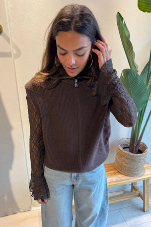 Dit mouwloze vestje is dé perfecte layering piece voor het najaar. Gemaakt van een zachte ribgebreide stof in een bruine tint, met een subtiele zilverkleurige rits voor een sportieve twist. De hoge kraag en rechte fit geven een moderne look die zowel casual als chic gestyled kan worden.