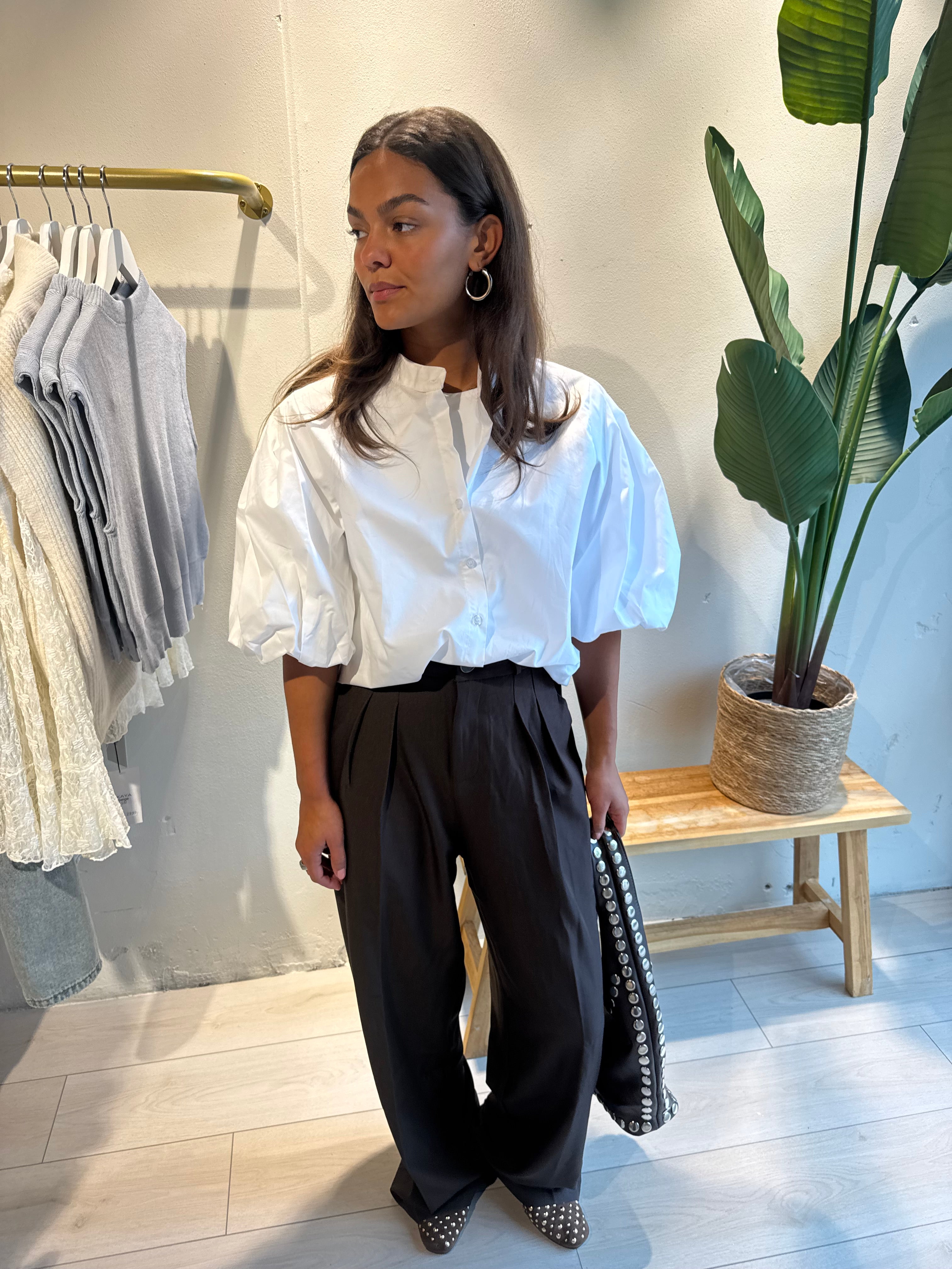 De Isel Blouse is een frisse, tijdloze basic met een vrouwelijke touch. Gemaakt van 100% katoen en afgewerkt met een subtiele pofmouw en klassiek kraagje. Dankzij de one size pasvorm valt hij losjes en comfortabel. Perfect te combineren met een jeans, pantalon of rok – een echte essential in je garderobe.