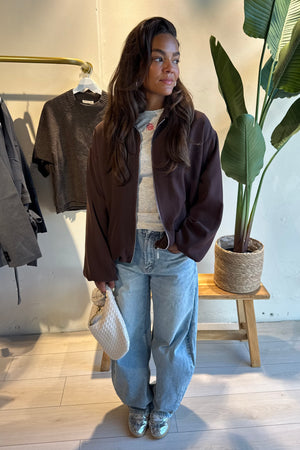Het Jojo jack is een bestseller dit seizoen! Het jasje is perfect voor binnen, en is stoer en gekleed tegelijk. De prachtige choco/bordeaux kleur is helemaal on trend en perfect voor het najaar. Wij zijn helemaal fan van hoe het jasje valt, het is lekker stoer door de licht oversized fit. Het is one-size, en te dragen vanaf maat XS t/m XL.