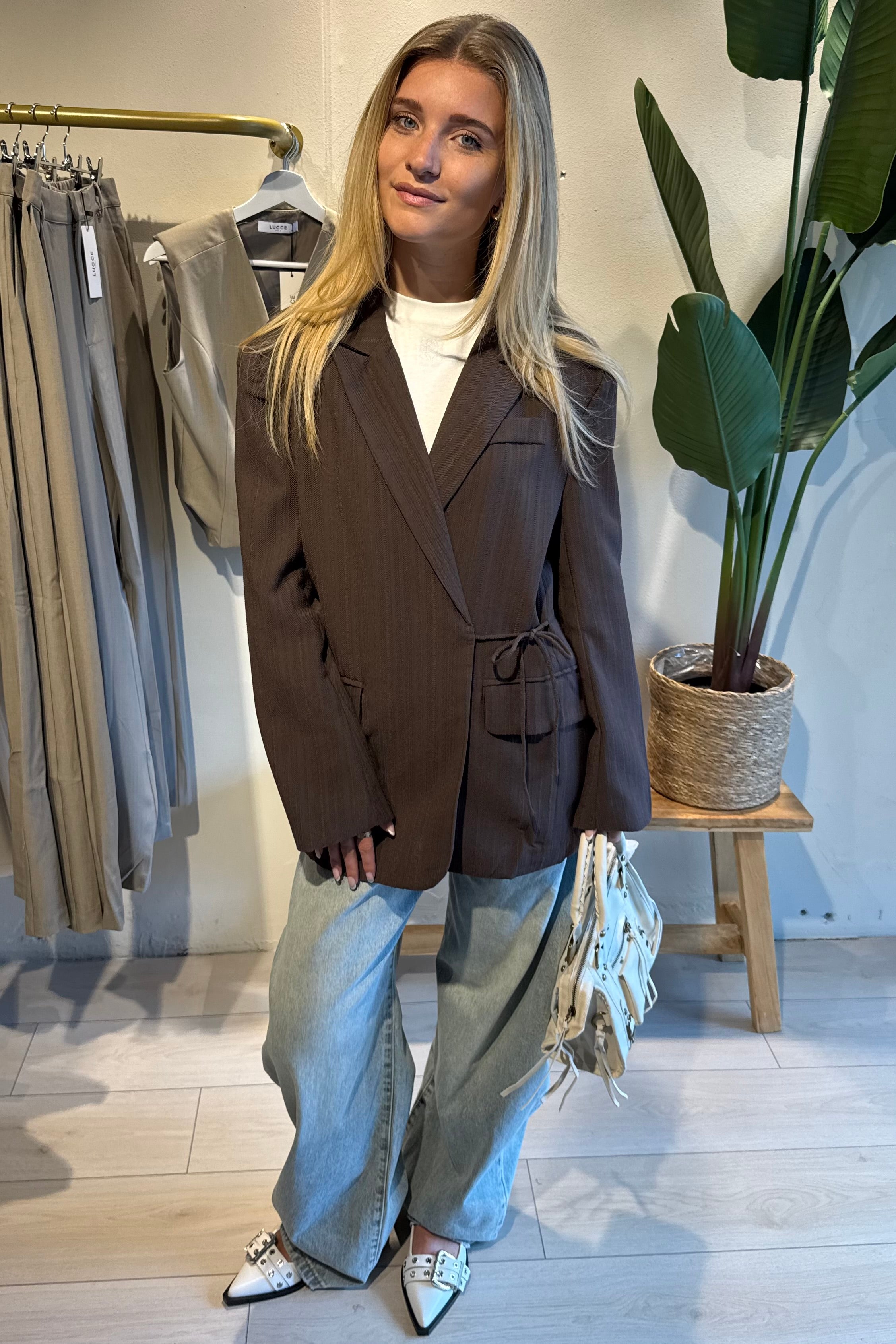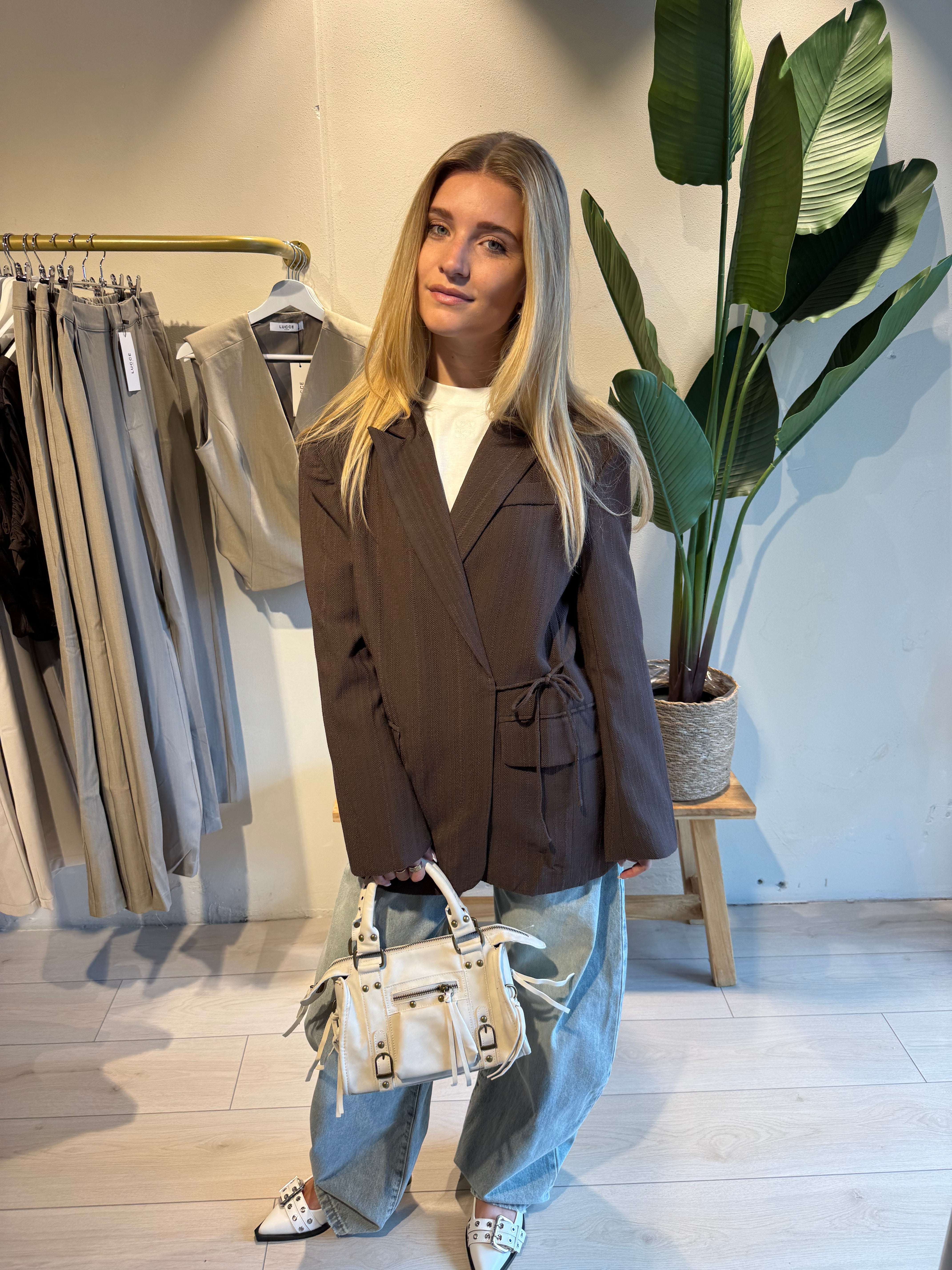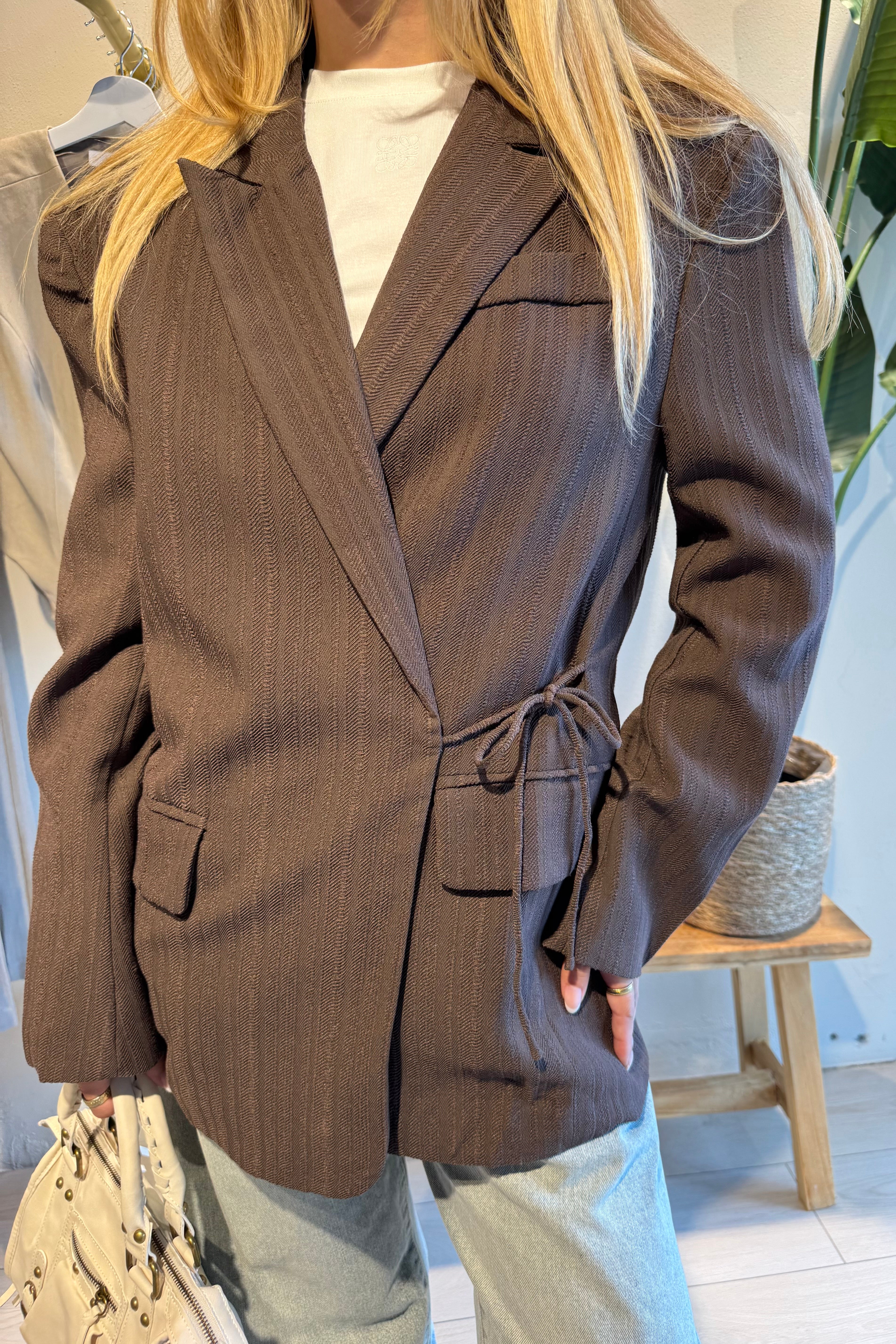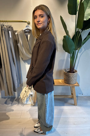 De Leslie Blazer is een stijlvolle essential die elegantie en comfort perfect combineert. De soepele stof geeft de blazer een prachtige valling, waardoor hij zowel chic als casual te dragen is. Dankzij het strikdetail in de taille creëer je eenvoudig een mooi vrouwelijk silhouet, terwijl de bruine tint zorgt voor een tijdloze en veelzijdige uitstraling.