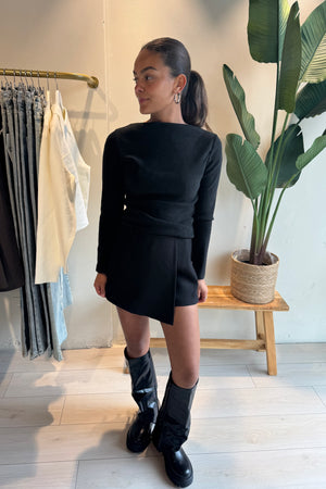 De Liv short lijkt op een rokje, maar is stiekem een broekje – ideaal voor wie stijl en gemak wil combineren. Dankzij de flap aan de voorkant oogt dit zwarte item als een mini skirt, terwijl je de bewegingsvrijheid van een short behoudt. Gemaakt van een zachte en stretchy stof die mooi aansluit. Een echte essential voor de nazomer, avondjes uit of een trendy city look!