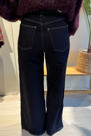 De Lorisse jeans dark navy is een stijlvolle extra wide leg spijkerbroek in een diepe, bijna zwarte donkerblauwe kleur, ideaal voor een moderne en comfortabele look. Het hoge en wijde model zorgt voor een vloeiende pasvorm en een eigentijdse, verfijnde uitstraling.