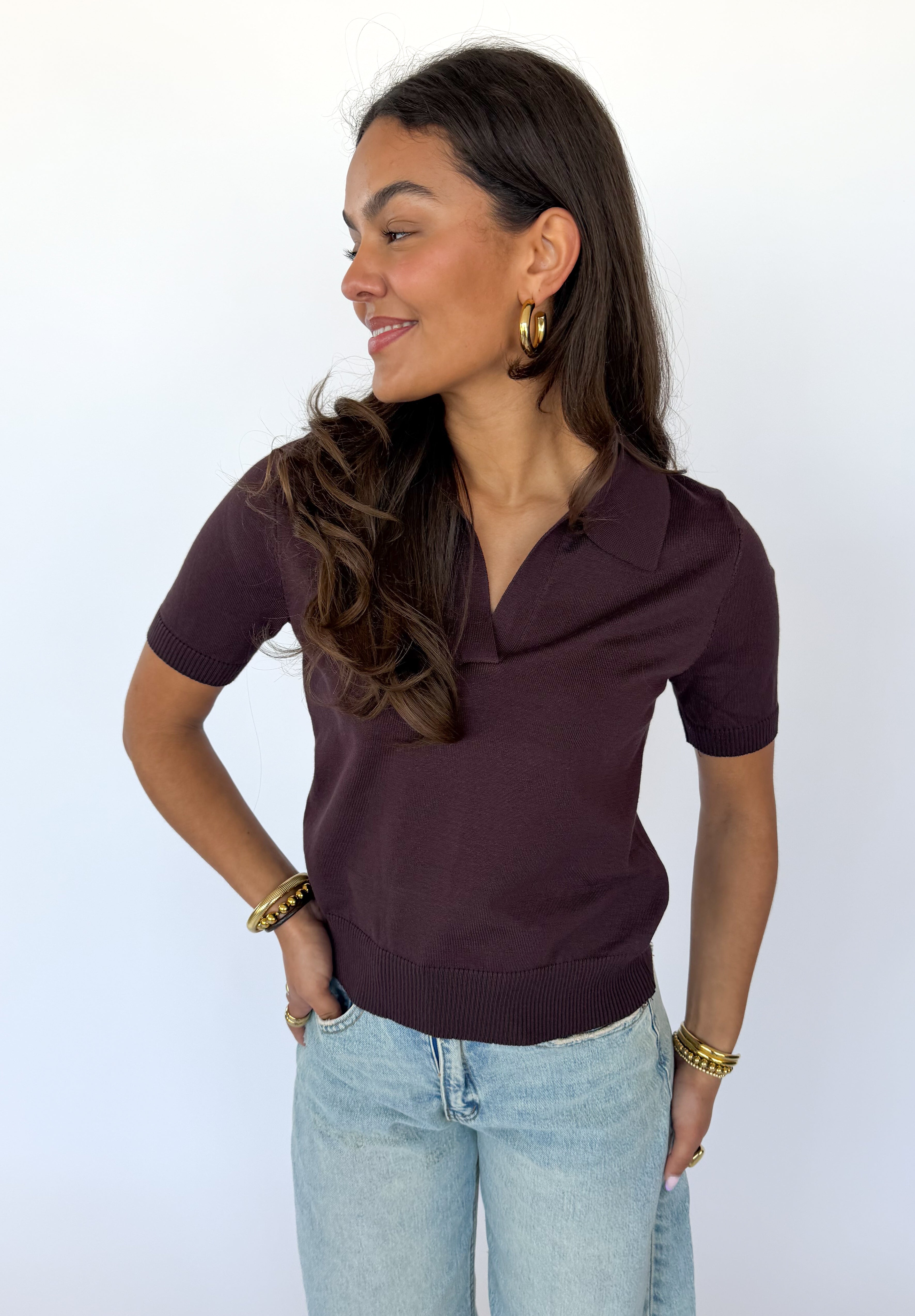 De Marvella Top is een stijlvolle, bruine top met een subtiel kraagje, gemaakt van een comfortabele mix van 70% viscose en 30% polyester. De zachte, licht glanzende stof valt soepel langs het lichaam en voelt comfortabel aan.