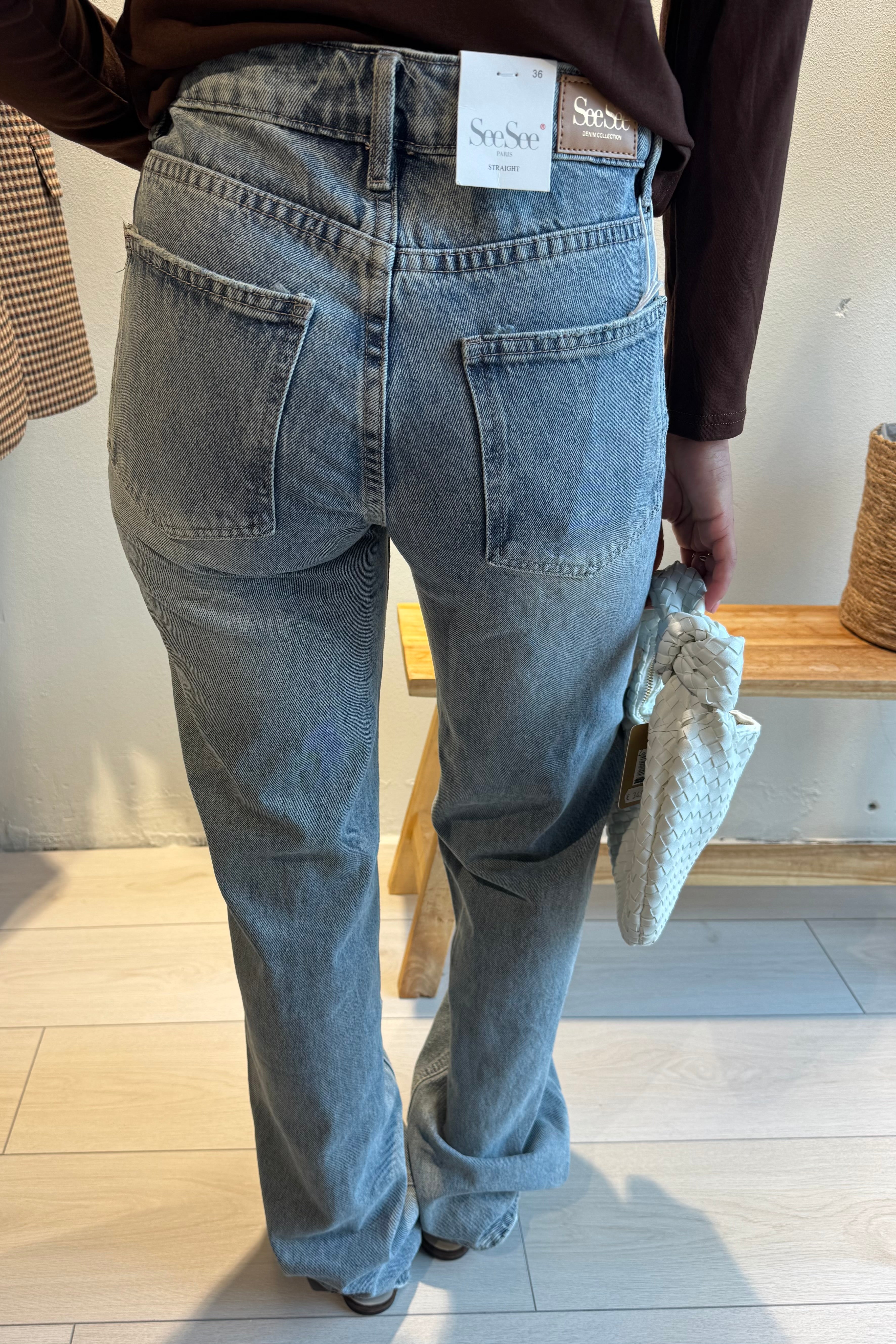 De Maud Jeans is zo’n broek die je élke dag uit je kast trekt. Deze straight fit jeans heeft een mid taille en een tijdloze blauwe wassing – niet te licht, niet te donker, precies goed. Daardoor past hij echt bij alles: van een basic T-shirt tot een nette blouse of blazer.