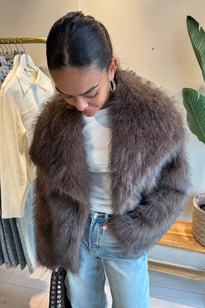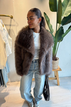 De Brina jas is jouw perfecte metgezel voor frisse dagen. Deze zachte faux fur jas in een mooie ash brown kleur straalt warmte en elegantie uit. Dankzij de one size pasvorm draag je ‘m comfortabel over elke outfit – van casual tot chic. De jas sluit met één handige knoop aan de voorkant, waardoor je ‘m makkelijk dichtdoet zonder in te leveren op stijl. En natuurlijk is ‘ie volledig diervriendelijk!