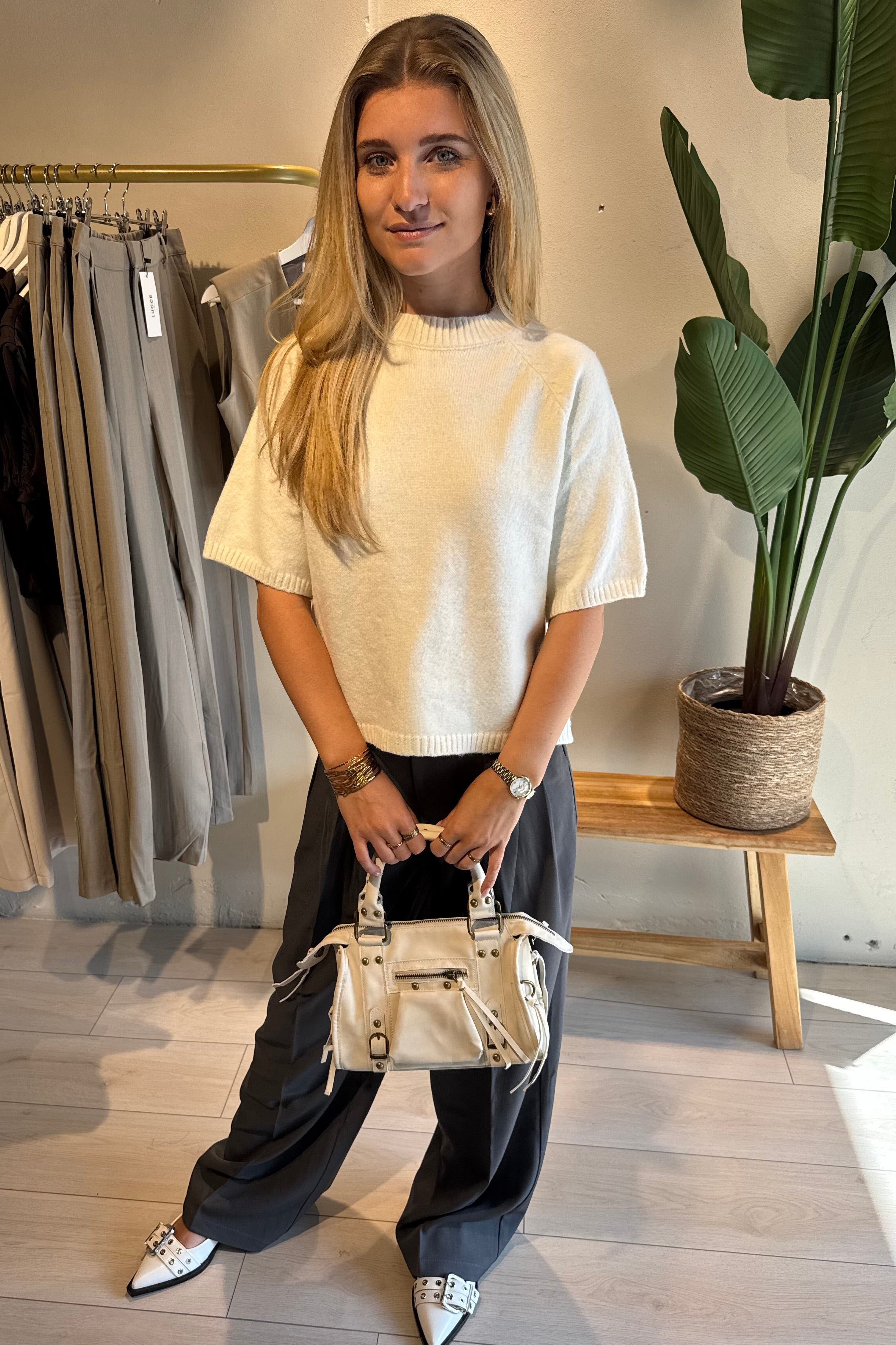 De May Top is een stijlvolle basic die je moeiteloos combineert met al je favoriete items. Dit fijngebreide topje met korte mouwen heeft een minimalistische uitstraling en is daardoor een echte must-have voor jouw capsule wardrobe.