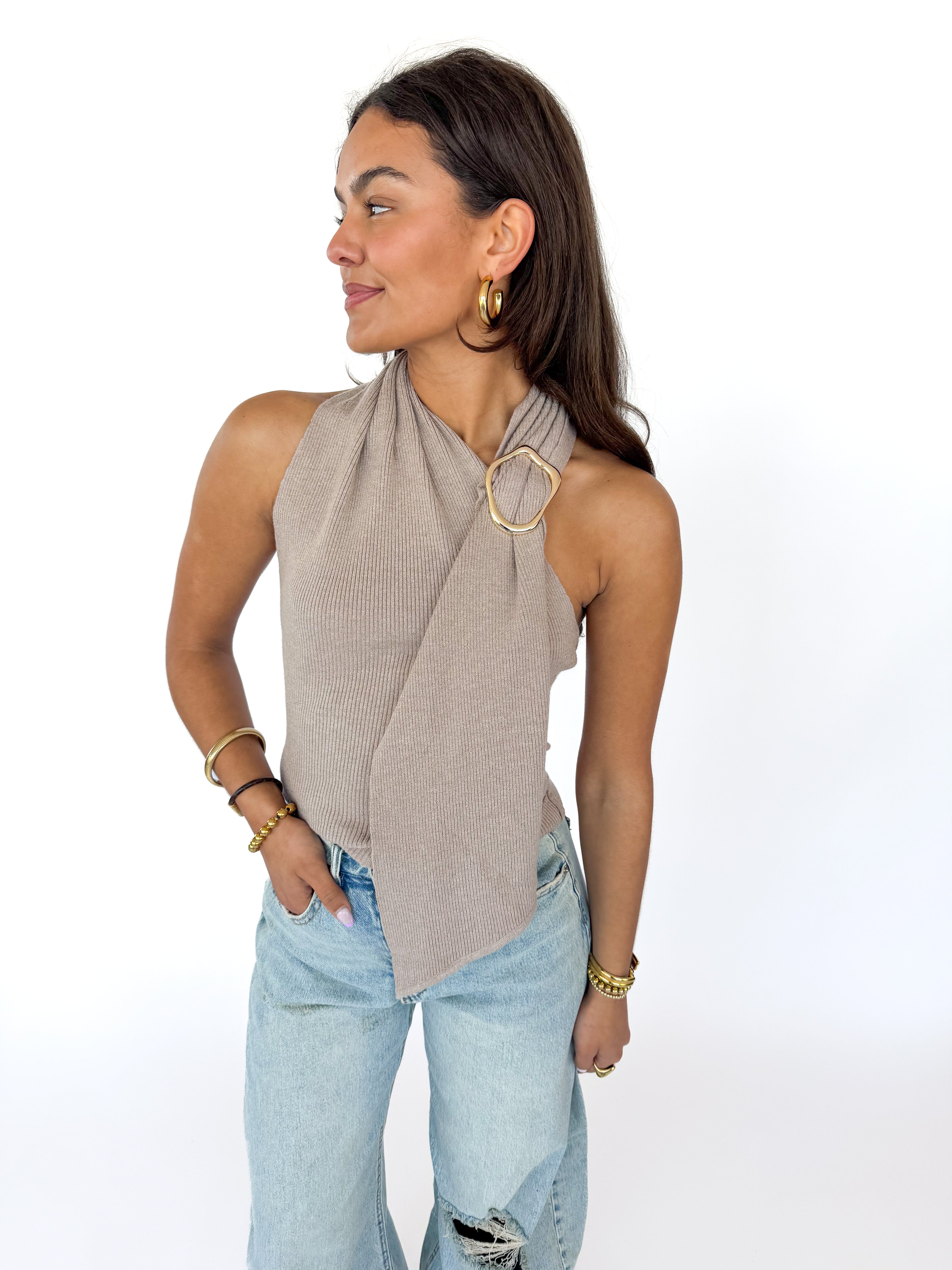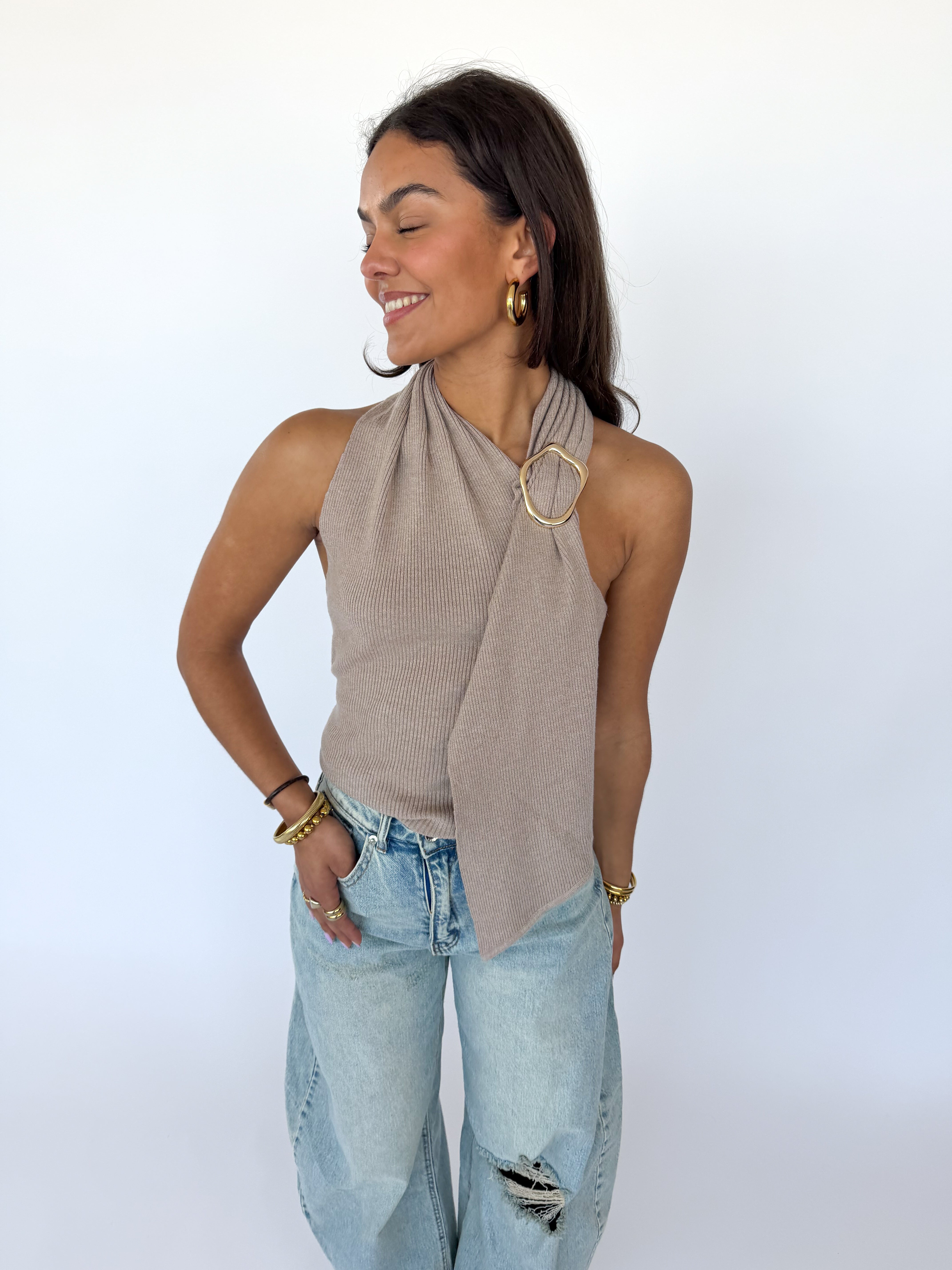 Het bijzondere gouden sieraad bij de nek geeft de top een opvallend en feestelijk accent, waardoor je outfit meteen een elegante finishing touch krijgt. Combineer de Nira Top met een pantalon, rok of jeans voor een stijlvolle, chique look.