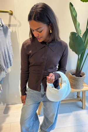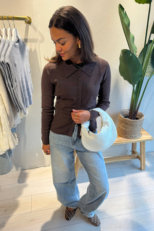 Het Noor topje is een fijngebreide top, super zacht en heerlijk te om te dragen in combinatie met bijvoorbeeld een jeans, of een shortje en hoge laarzen. De bruine kleur is natuurlijk helemaal on trend!
