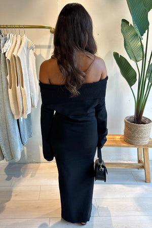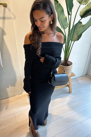 Blijf warm en stijlvol met de Of Shoulder Jurk in zwart. Deze lange jurk valt net niet tot de grond en heeft lange mouwen, waardoor hij perfect is voor de koudere dagen. Gemaakt van een zachte mix van viscose, polyester en polyamide voelt hij comfortabel en luxe aan. Combineer ‘m met boots of sneakers voor een casual look, of maak het af met een mooie riem voor een nettere stijl.