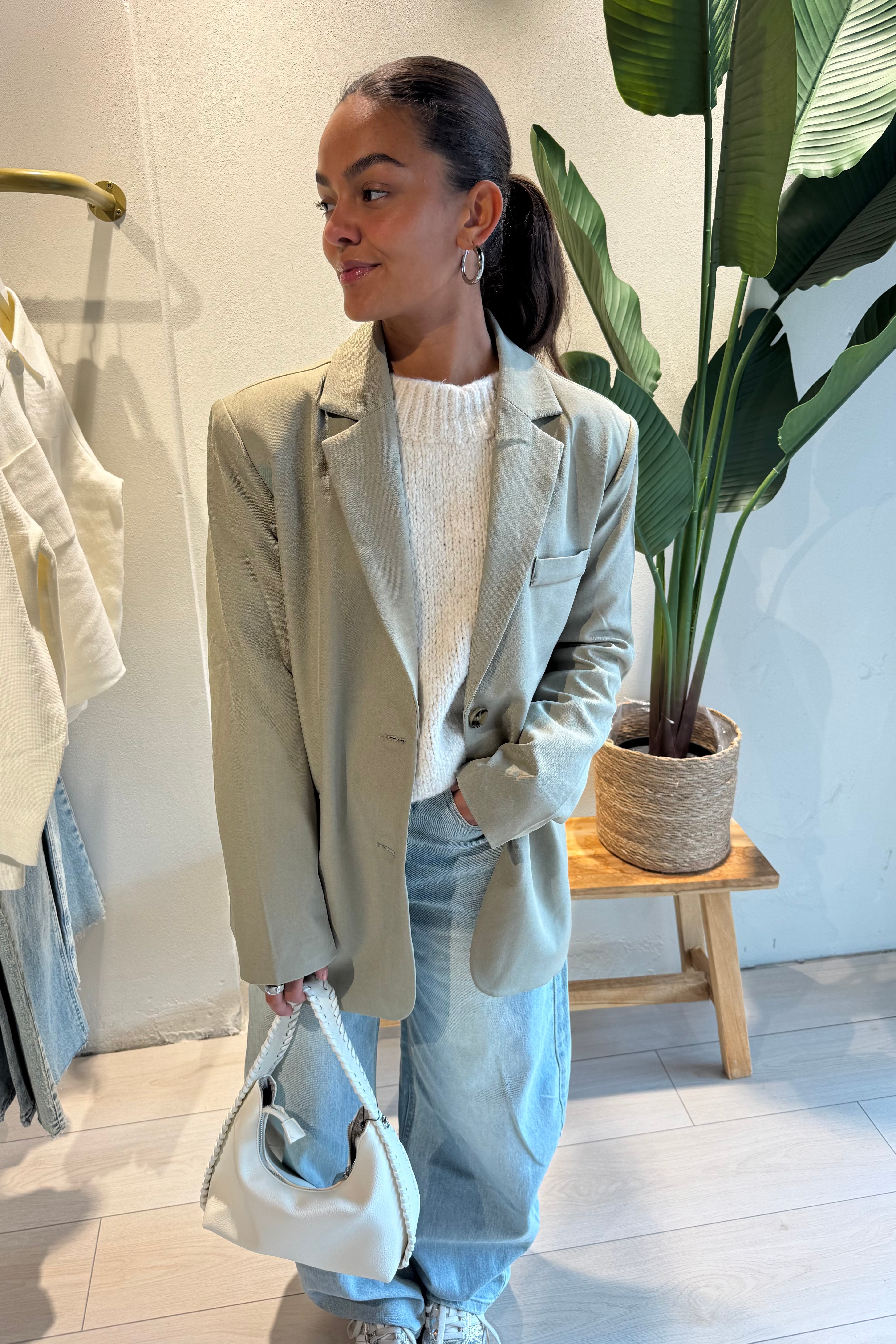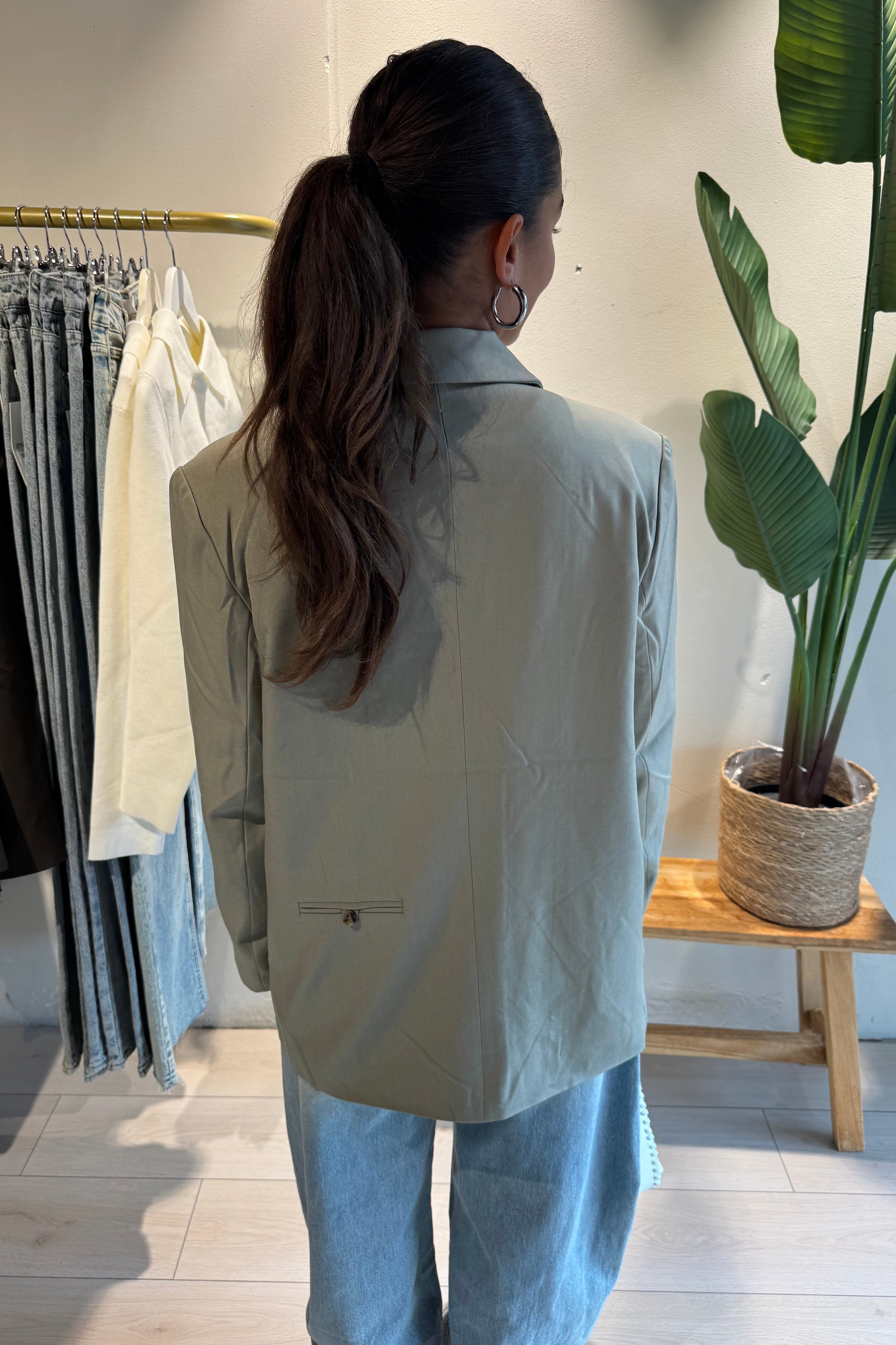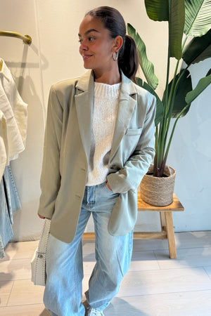 Maak je outfit af met de Loes blazer in een zachte vintage mintkleur – perfect voor een frisse, stijlvolle en trendy look. De kleur geeft een moderne twist aan deze klassieke blazer. Gemaakt van 100% polyester voor een comfortabele pasvorm en moeiteloos te combineren met je favoriete items. Draag ‘m casual met een jeans of netjes over een jurkje: alles kan met Loes.