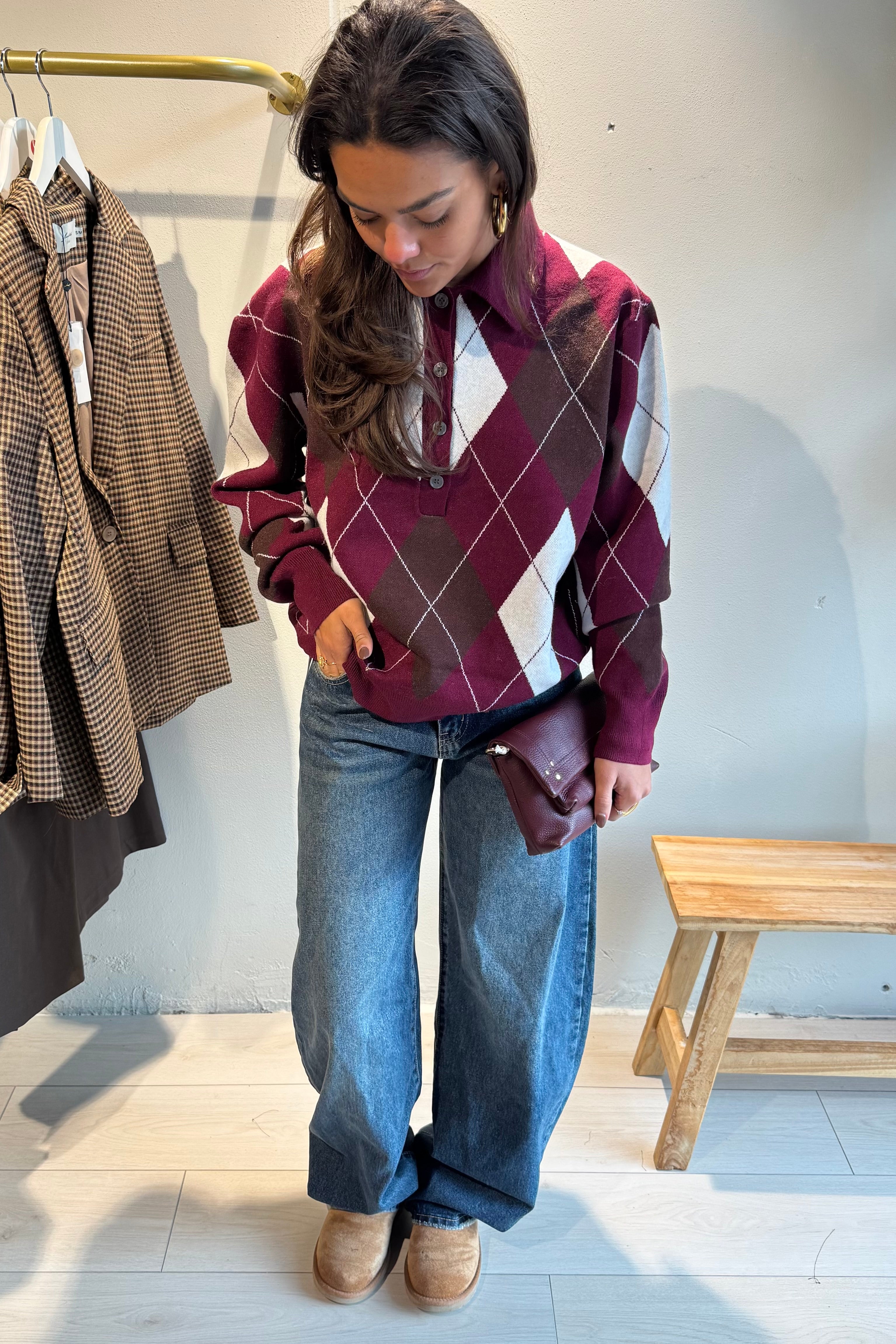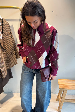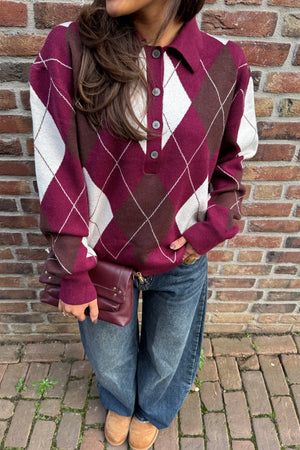 De Rylie Sweater is een cozy trui met een trendy twist! Het klassieke ruitenpatroon in bordeaux rood, bordeaux, wit en bruin geeft deze trui een warme, stijlvolle uitstraling die perfect is voor herfst- en winterdagen. Het kraagje met knoopjes maakt ‘m extra charmant en girly, waardoor je look direct compleet is.