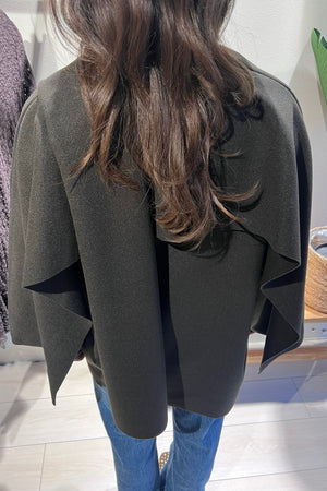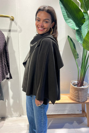 De Solenne cape is een stijlvolle donkerbruine cape die perfect is om je outfit een luxe en elegante touch te geven. Het ruime model valt soepel en combineert warmte met draagcomfort, waardoor het ideaal is voor zowel casual als chique looks. Gemaakt van een hoogwaardige mix van 65% wol, 30% polyester en 5% elastaan, voelt de stof zacht en soepel aan terwijl hij zijn vorm behoudt.