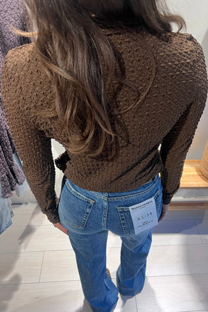 De Talia top bruin is een elegante, licht doorschijnende top met een subtiel textuurtje, die een speelse en vrouwelijke touch aan je outfit geeft. Het zachte materiaal voelt comfortabel aan en valt mooi langs het lichaam. Perfect om te combineren met broeken, rokken of shorts voor zowel casual als stijlvolle looks.