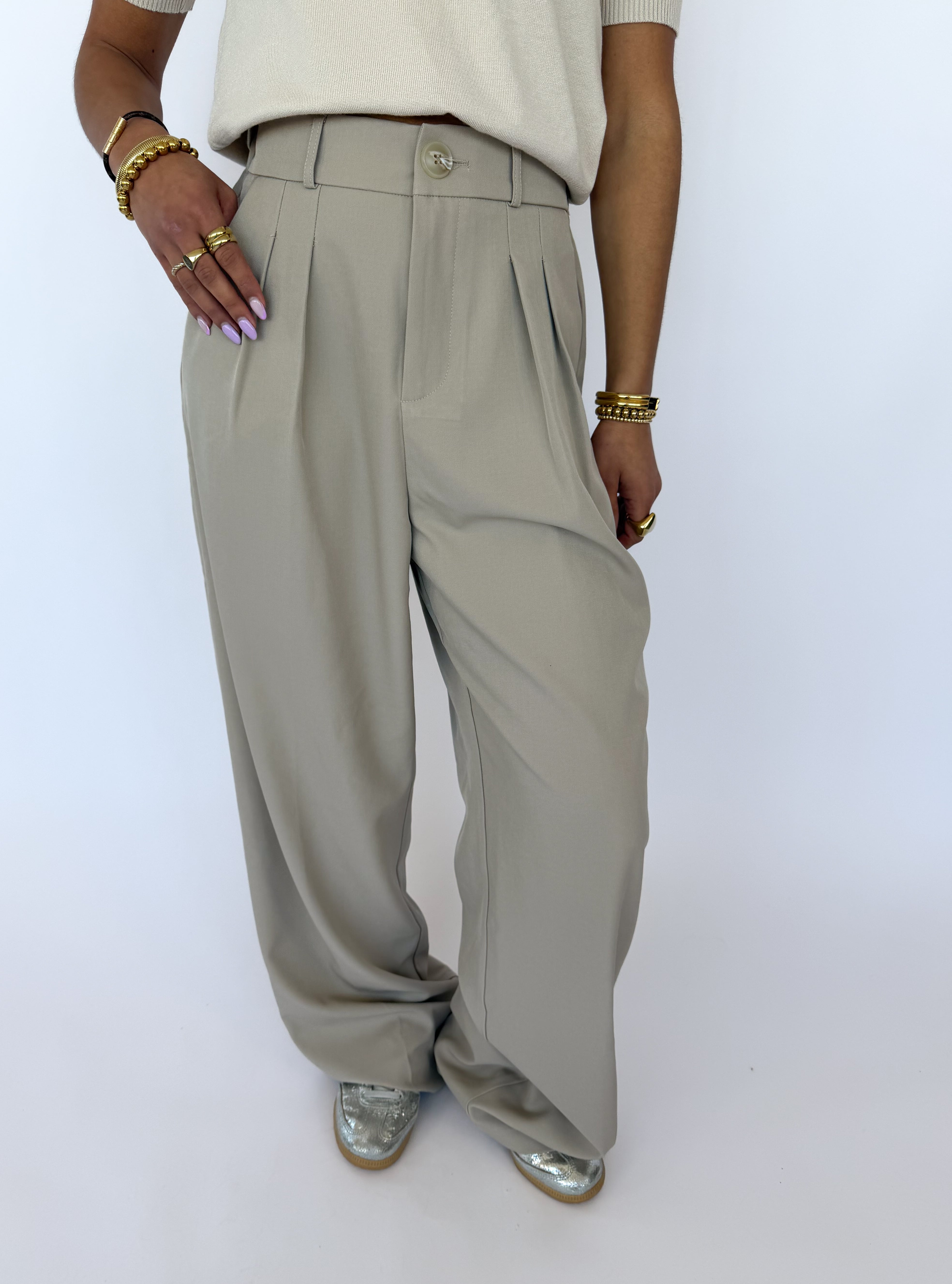 De pantalon is perfect te combineren met blouses, tops of truien voor een casual-chic of nette look. Dankzij de tijdloze kleur en het elegante model is het een veelzijdig item voor in elke garderobe.
