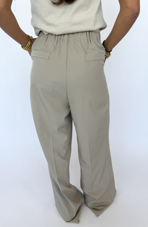 De Tivora Pantalon is een stijlvolle beige broek met een comfortabele pasvorm en een elegante uitstraling. Het model sluit aan met een knoop aan de voorkant en heeft een elastische band aan de achterkant voor extra comfort en een flatterende fit.