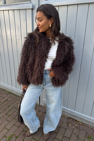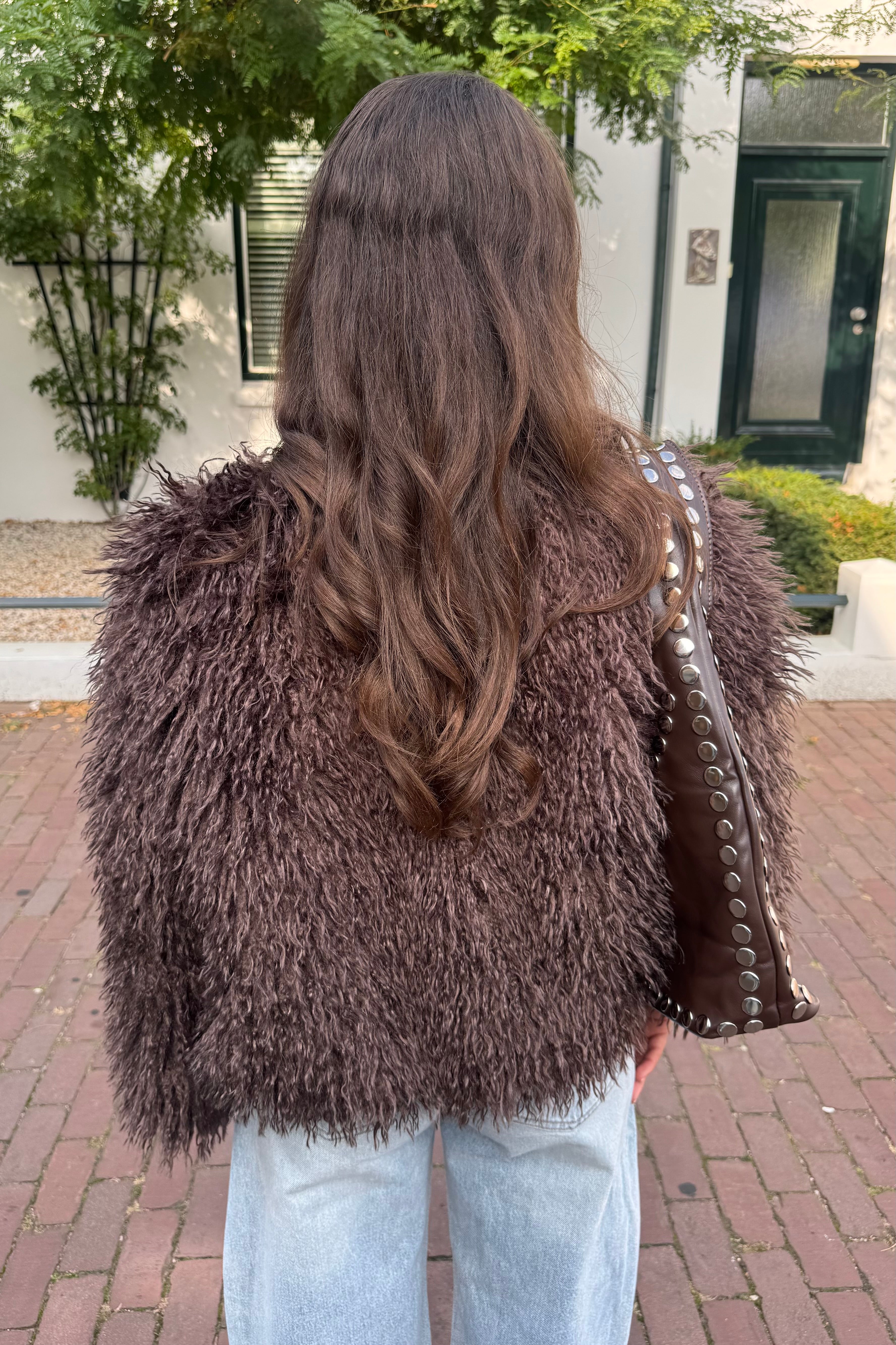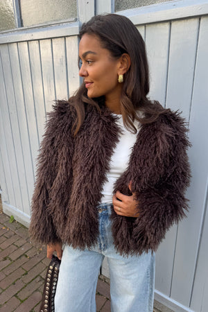Blijf lekker warm en super stijlvol met het Viva Jack. Deze fluffy teddyjas in donkerbruin voelt heerlijk zacht aan en heeft een normale lengte, waardoor hij perfect is voor dagelijks gebruik. Ideaal om casual te dragen over je favoriete outfit en makkelijk te combineren met jeans, jurkjes of rokjes.