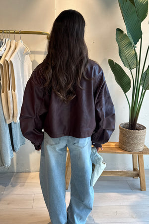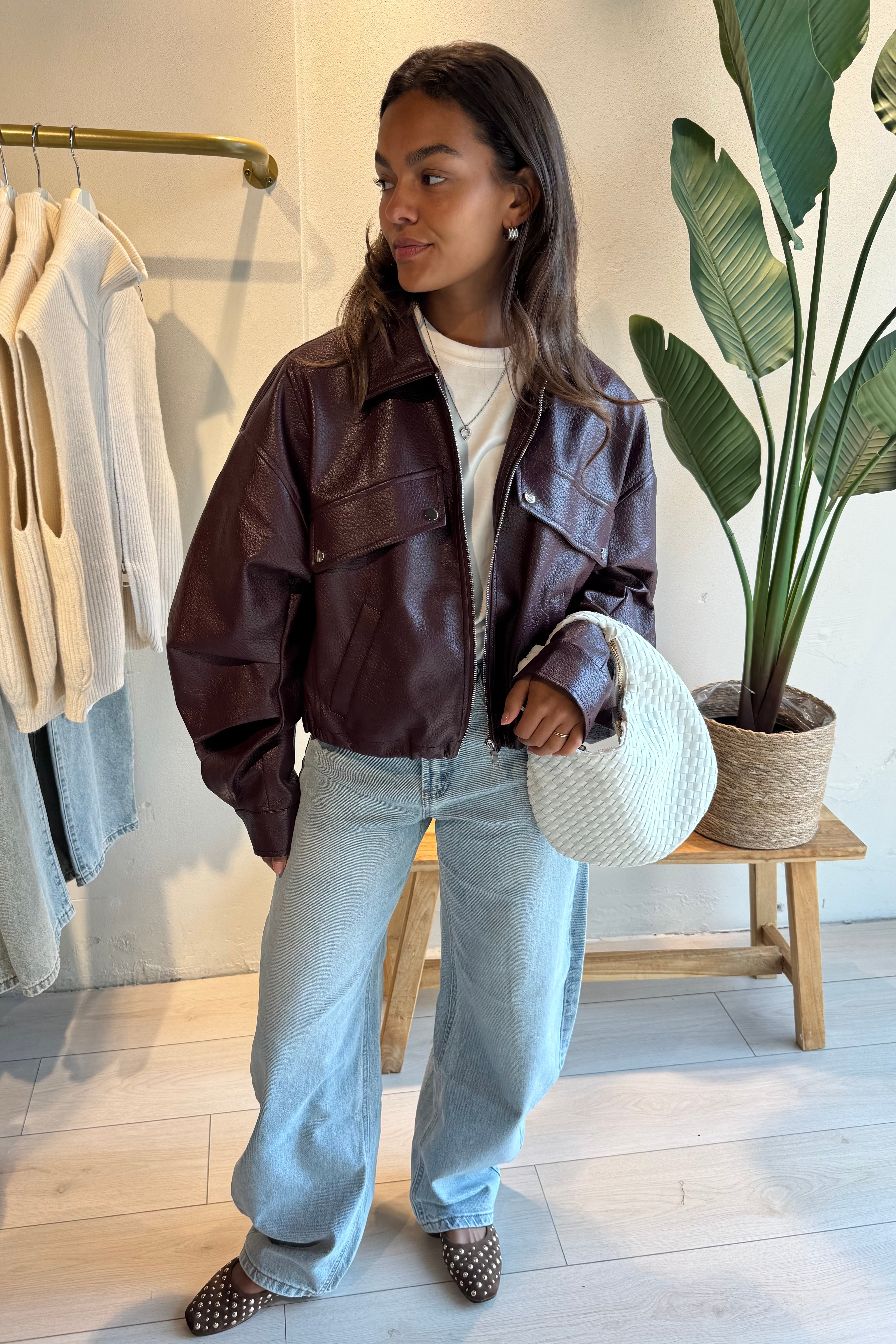 Geef je outfit een stoere touch met het Zara jacket. Dit korte bordeauxrood nepleer jasje valt mooi tot je middel en heeft een stijlvolle zilveren rits en twee zakken met zilveren knoopjes. Het subtiele structuurtje in het materiaal maakt het jasje extra bijzonder. Perfect om casual te combineren of over een leuke trui te dragen.