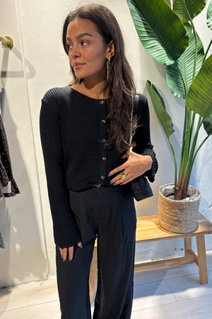 Het Zayla vestje zwart is een elegant en lichtgewicht vestje, perfect voor het afmaken van een stijlvolle outfit of het toevoegen van een laagje op koelere dagen. Het vestje is voorzien van subtiele gouden knoopjes voor een chique en verfijnde uitstraling.